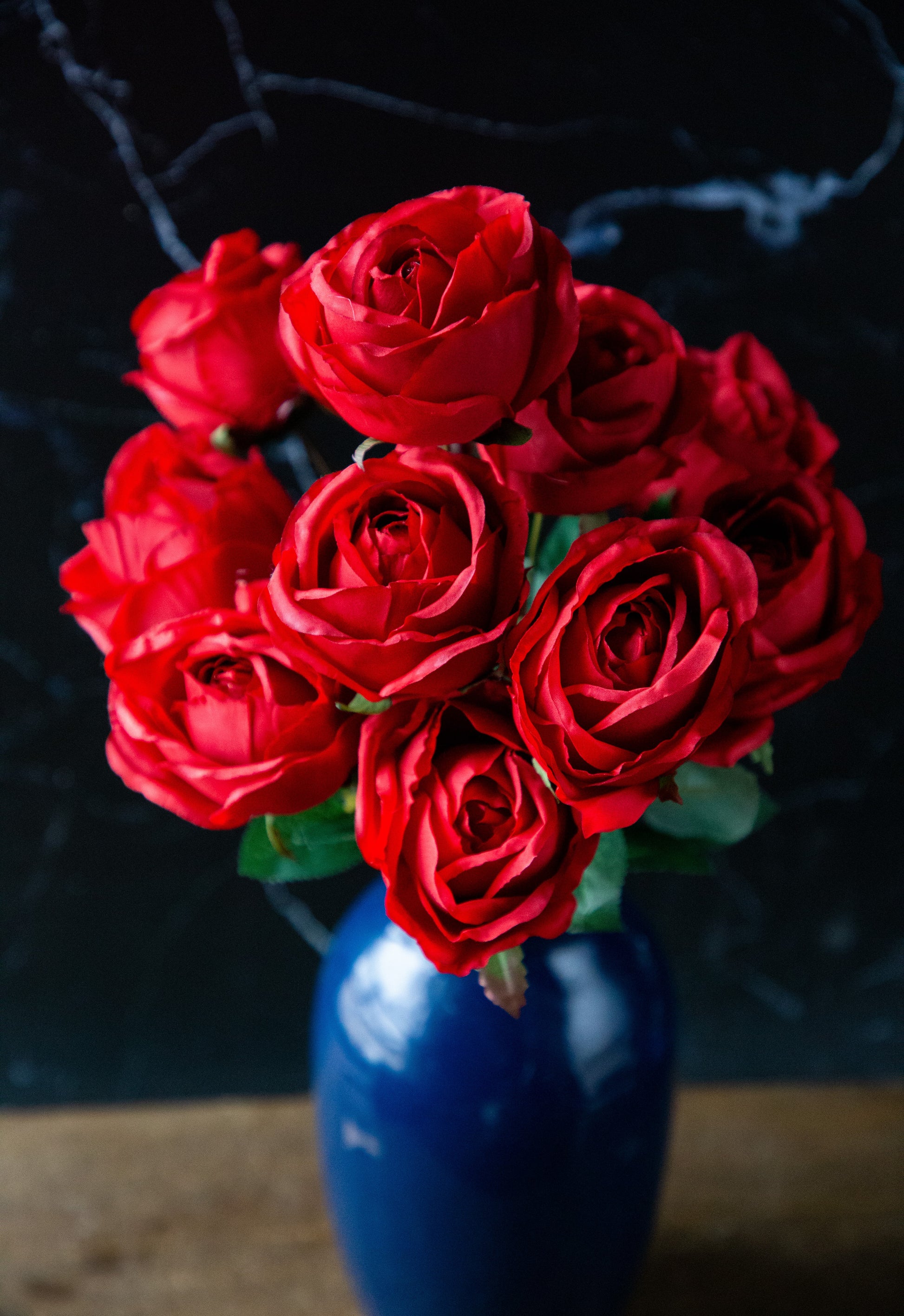 Beautiful red roses say "love" in almost every language. Our delicate and natural petals give a realistic appearance and will last longer than the real kind.